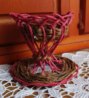 Le départ est le même que pour le plateau d'hier, point à 2 brins puis point à 3 brins (torche), mais creuser la forme pour en faire une corbeille